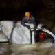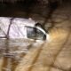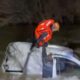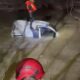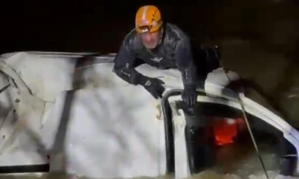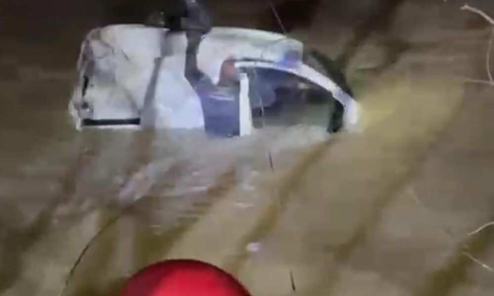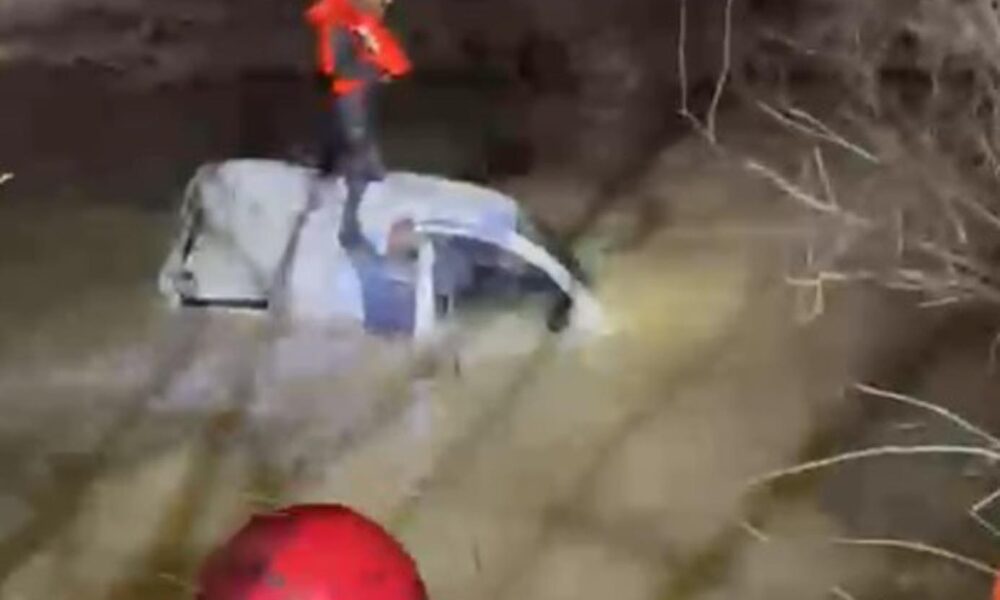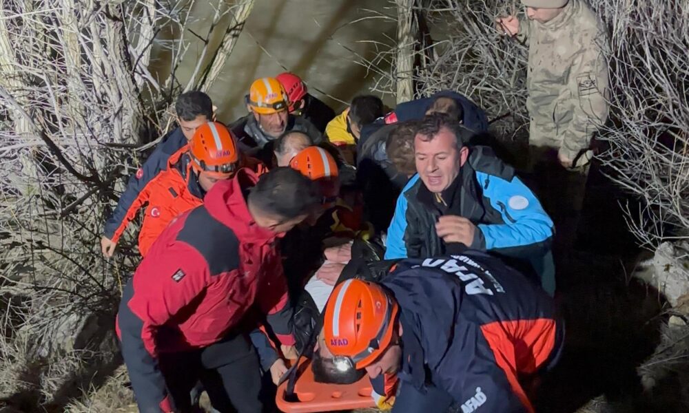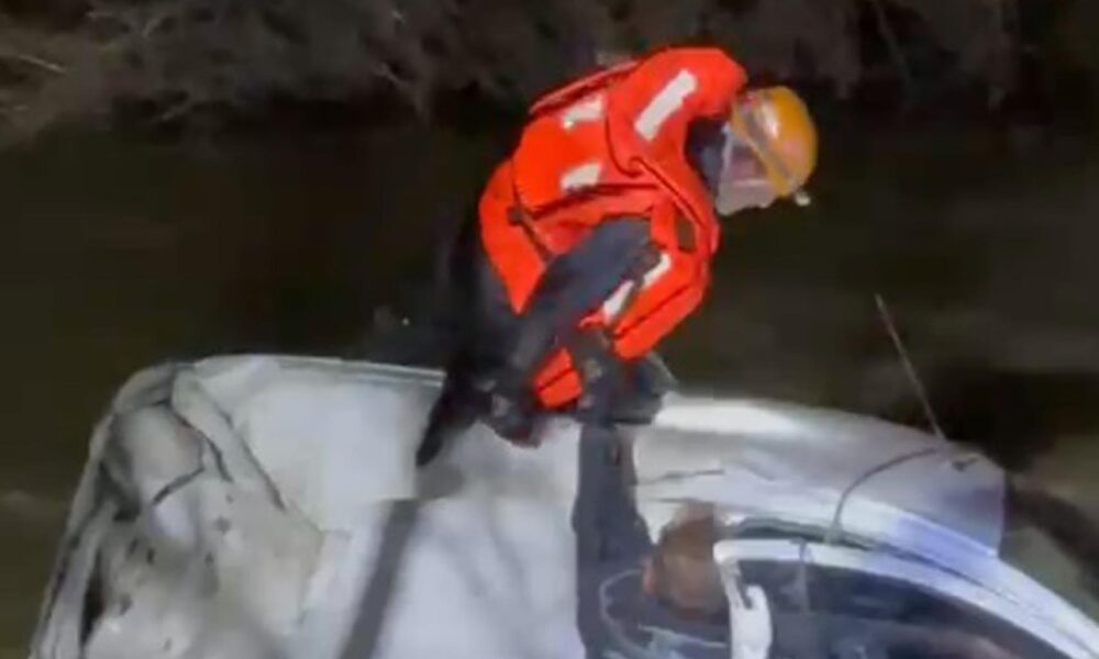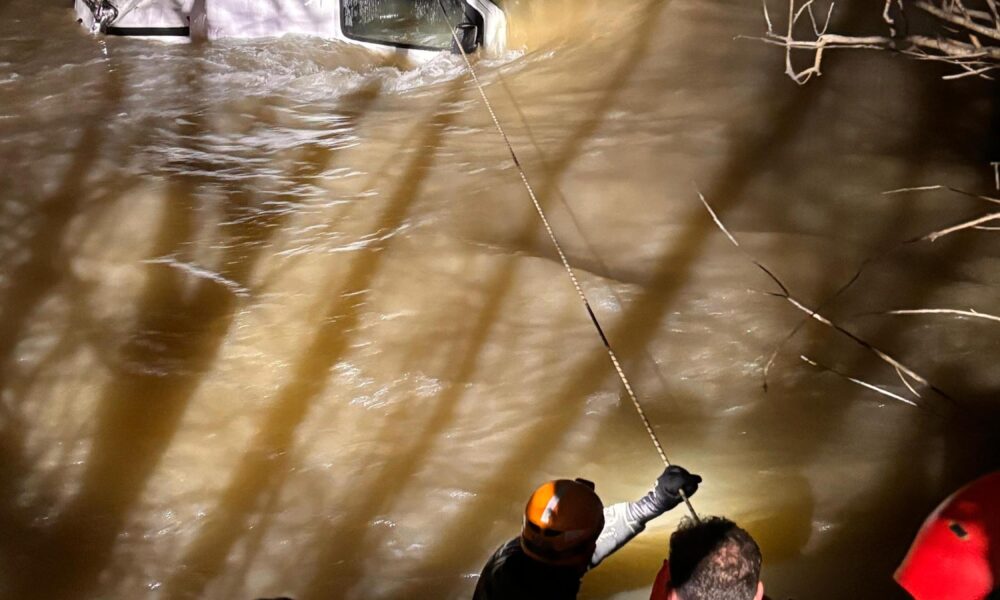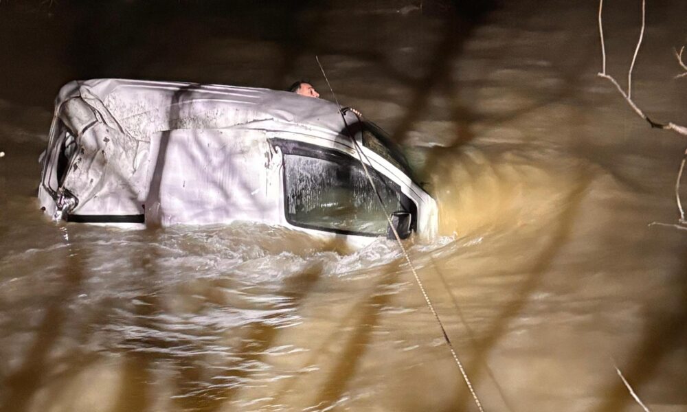 Nehre uçan araçta mahsur kalan sürücü, ekipler tarafından halatla kurtarıldı