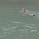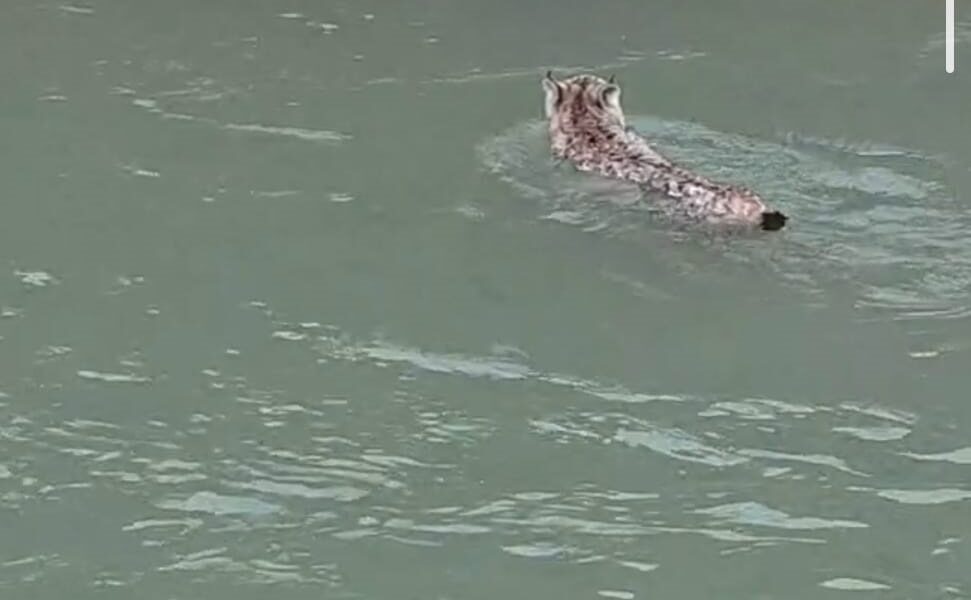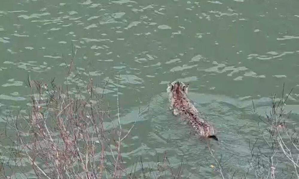 Nesli tehlike altında olan vaşak, çaydan geçerken görüntülendi