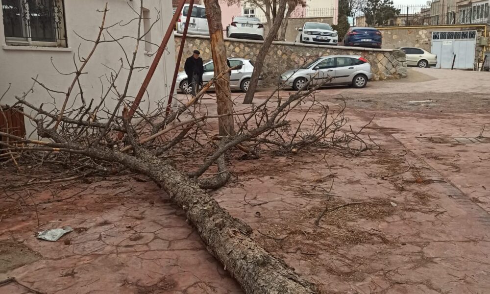• Nevşehir’de, dün akşam saatlerinden itibaren etkili olan kuvvetli rüzgar ve fırtına ağaç ve çatı uçmasına neden oldu. Fotoğraf: Nevşehir,(DHA)