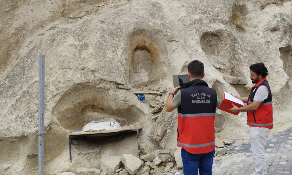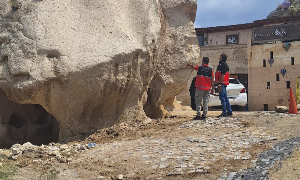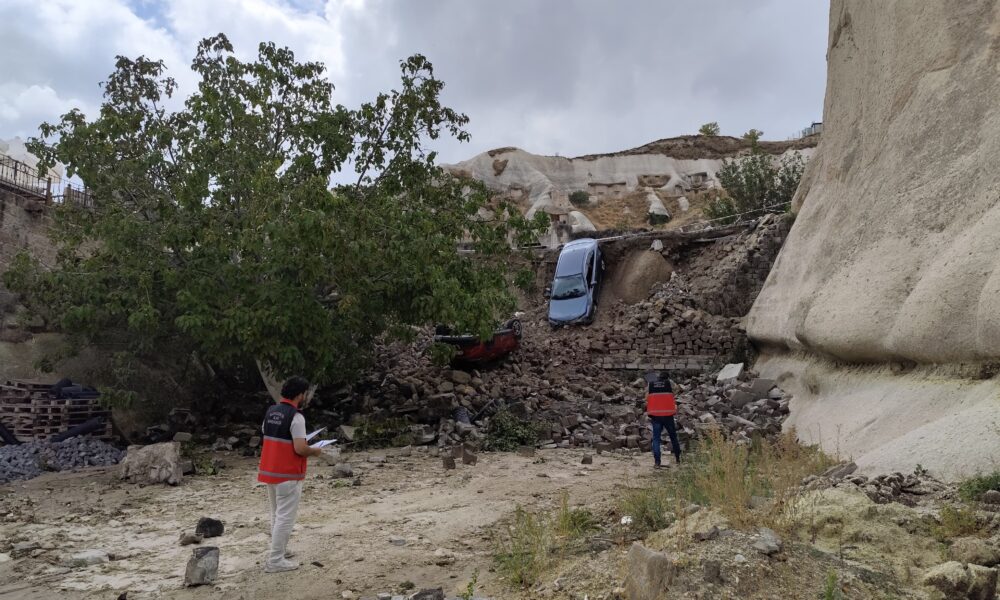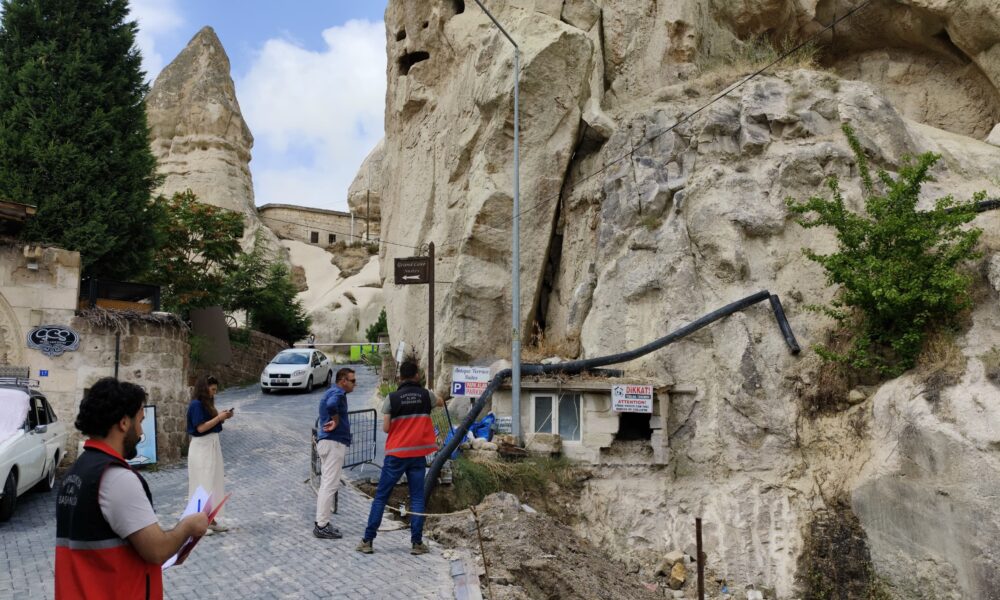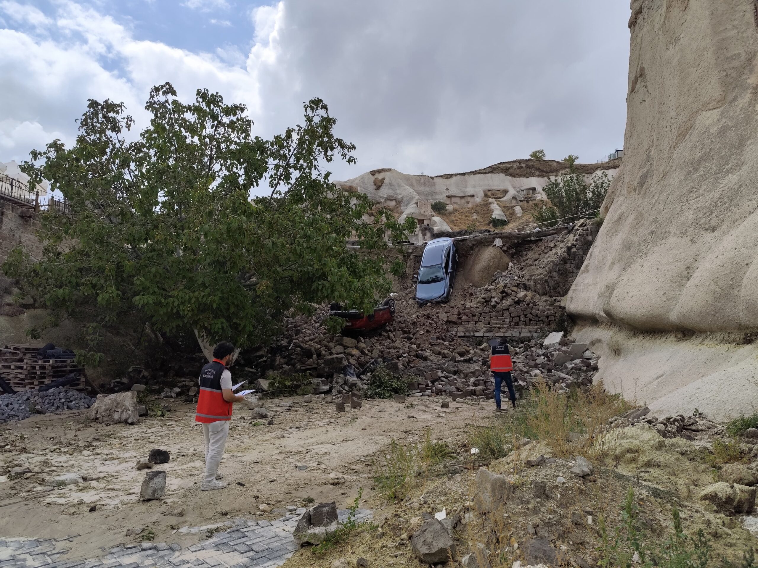 Nevşehir’de yaşanan sel felaketinden sonra peribacalarında hasar tespit çalışması
