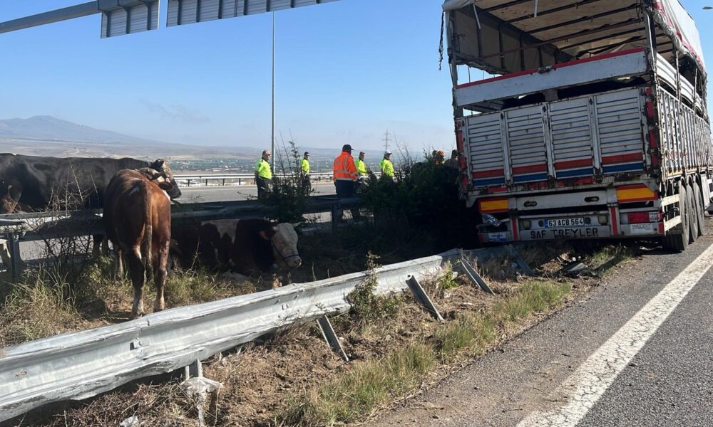 Niğde’de kurbanlık taşıyan TIR bariyerlere çarptı: 2 kişi yaralı, 7 büyükbaş öldü