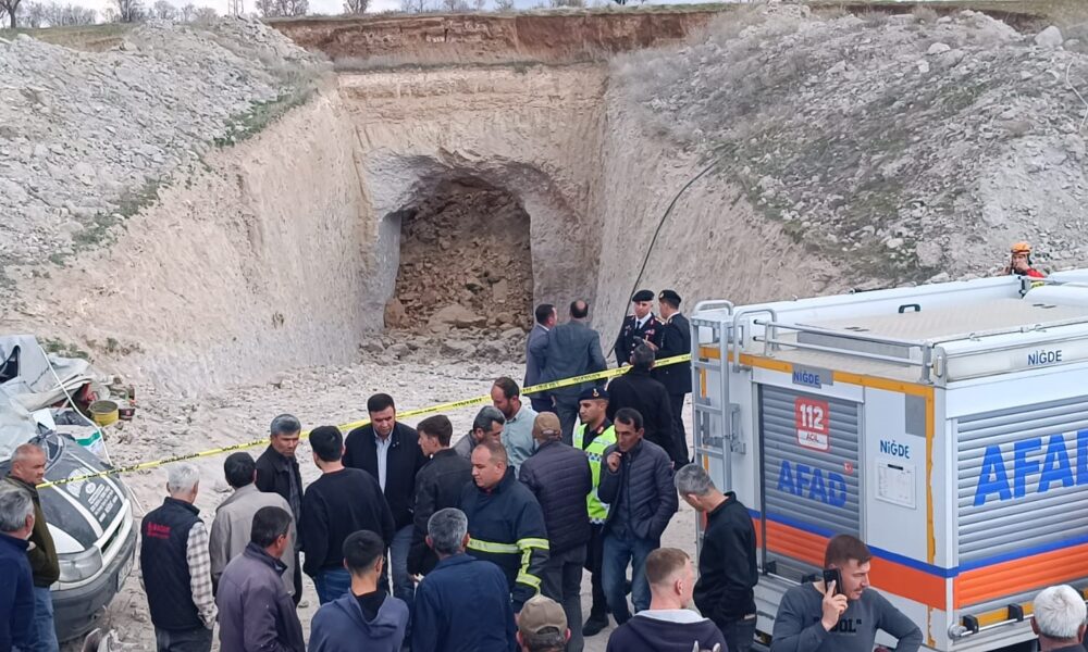 NİĞDEde patates deposu inşa etmek için kazı yaparken göçük altında kalıp hayatını kaybeden 2 işçiden Murat Aydoğan (34) gözyaşları arasında toprağa verildi. Merkeze bağlı Çarıklı köyünde dün saat 14.00 sıralarında yer altına patates deposu inşa etmek için yapılan çalışma sırasında göçük meydana geldi. Göçükte 6 işçi toprak altıda kaldı. Diğer işçilerin ihbarı üzerine bölgeye AFAD, itfaiye ve jandarma ekipleri sevk edildi. Toprak altından çıkarılan işçilerden Murat Değirmenci ve Murat Aydoğanın hayatını kaybettiği belirlendi. Yaralanan Seyfettin Kaya, Muharrem Tanay, Ufuk Ergün ve Alpaslan İpek ise ambulanslarla Niğde Ömer Halisdemir Eğitim ve Araştırma Hastanesine kaldırıldı. Göçük yaşanan arazide obruk büyüklüğünde çukurlar oluştuğu görüldü.Morgda otopsi işlemleri tamamlanan Murat Değirmenci ve Murat Aydoğanın cenazeleri yakınlarına teslim edildi. Murat Değirmenin cenazesi, toprağa verilmek üzere memleketi Nevşehire götürüldü. Murat Aydoğanın cenazesi ise Çarıklı köyüne getirildi. Burada düzenlenen cenaze törenine ailesi, Niğde Valisi Cahit Çelik, İl Emniyet Müdürü Adnan Özdemir ve vatandaşlar katıldı. Aydoğan, kılınan namazın ardından yakınlarının gözyaşları arasında toprağa verildi.
