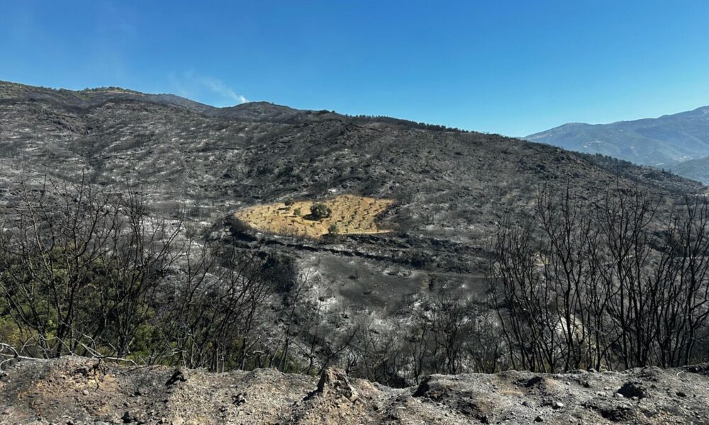 Ödemiş’te küle dönmüş alanın ortasındaki 5 dönüm zeytinlik, yangından etkilenmedi