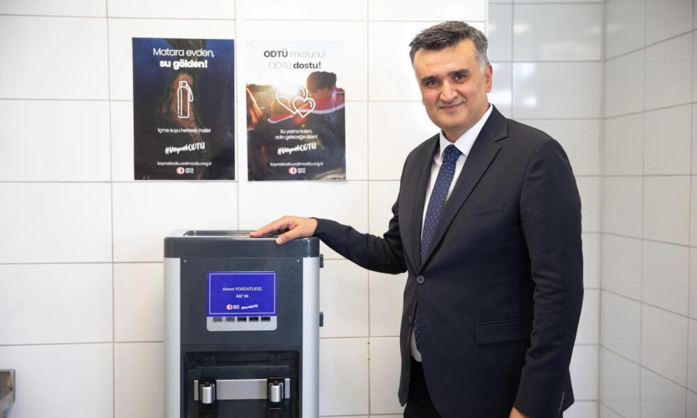 ODTÜ Rektörü Prof. Dr. Ahmet Yozgatlıgil, bir öğrencinin öğrenim hayatı boyunca ortalama 2 bin 500 litre su tükettiğini bunun da yaklaşık 5 bin adet pe şişeye denk geldiğini söyledi. Buradan yola çıkarak projeyi hayata geçirdiklerini söyleyen ODTÜ Rektörü Prof. Dr. Yozgatlıgil, şöyle konuştu; “Temiz içme suyuna erişim herkesin hakkıdır. Bir öğrenci öğrenim hayatı boyunca 2 bin 500 litre su tüketiyor. Bu da yaklaşık 5 bin pet şişe demek. Tabii ki temiz su herkesin hakkı ve öğrencilerimizin bu suya ücretsiz erişimi bizim için önceliğimiz. Öğrencilerimize bu konuda destek olmak ve atık azaltmasını sağlamak. Burada öğrenim hayatı boyunca öğrenci başına 5 bin plastik şişenin doğaya karışmasını engellemek için bir proje başlattık. Kaynak ODTÜ projesi. Suyumuzun kaynağı Eymir Gölü. Eymir Gölü bizim hem ekolojik anlamda hem araştırmalarımız, spor tesislerimiz noktasında çok önemli bir varlığımız. Eymir Gölü’nün suyunu arıtma sistemleri sayesinde öğrencilerimize içme suyu olarak ulaştırmış olacağız. Bunu mezunlarımızla beraber bir kampanya olarak başlattık. Mezunlarımızın ODTÜye aidiyeti çok yüksek. ODTÜnün 160 binden fazla mezunu var ve dünyanın 160’tan fazla ülkesinde en az bir ODTÜ mezunu var. Biz mezunlarımıza dedik ki, ‘siz de bir su tesisi, su arıtma sistemini öğrencilere bağışlayın’. Ve bu bağışlarımızda şu anda kütüphanedeyiz, burada ya da kafeteryada, yurtlarda, sınıflarda bu su arıtma sistemlerini mezunlarımız bağışlayarak öğrencilerimizin ücretsiz suya erişimini sağlanıyor. Kendim de 4 yıl boyunca 1’inci yurtta kaldım. Kendi kaldığım odadaki kata ben de bir bağış yaptım. Böylece bu iyilik hareketine katılmış oldum.”