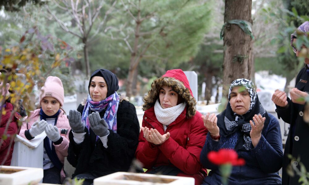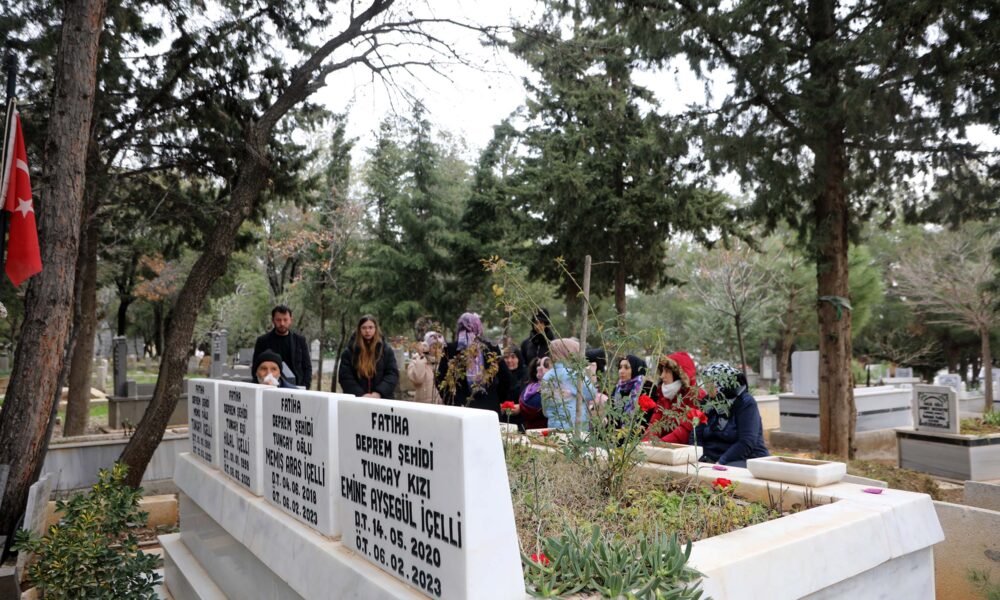 Acılarının hala taze olduğunu ifade eden Memiş İçelli, “Acımız halen taze. Nasıl ki 6 Şubat günü o tarifsiz acıyı yaşadıksa aynı acıyı şu gün de yaşıyoruz. O anda ateş düştüğü yeri yakıyor. Deprem gecesi benim evim yıkılmadı. Hemen oğlumu aradım cevap veren olmayınca koşa koşa gittik ki bina yerle bir. Bağırdık çağırdık çare yok. Sabah 9’da bir ses geldi. Tırnaklarımızla kazıya kazıya oğlumu çıkardık. Dün gece de sabaha kadar uyumadık. Sabah erken saatte oğlumun evine geldim. Oğlumun ailesiyle mezarları yan yana burası bizim evimiz gibi oldu. Her gün namazı burada kılıyorum, namazın ardından oğlumun evini, yani mezarını ziyaret gelip gidiyorum” diye konuştu.