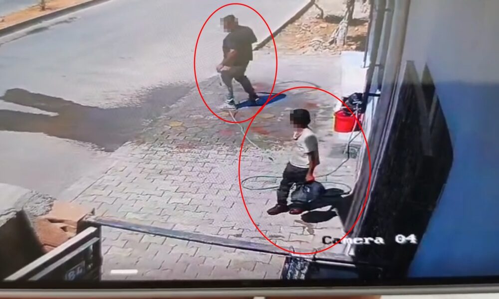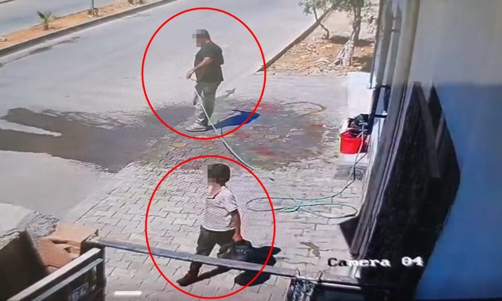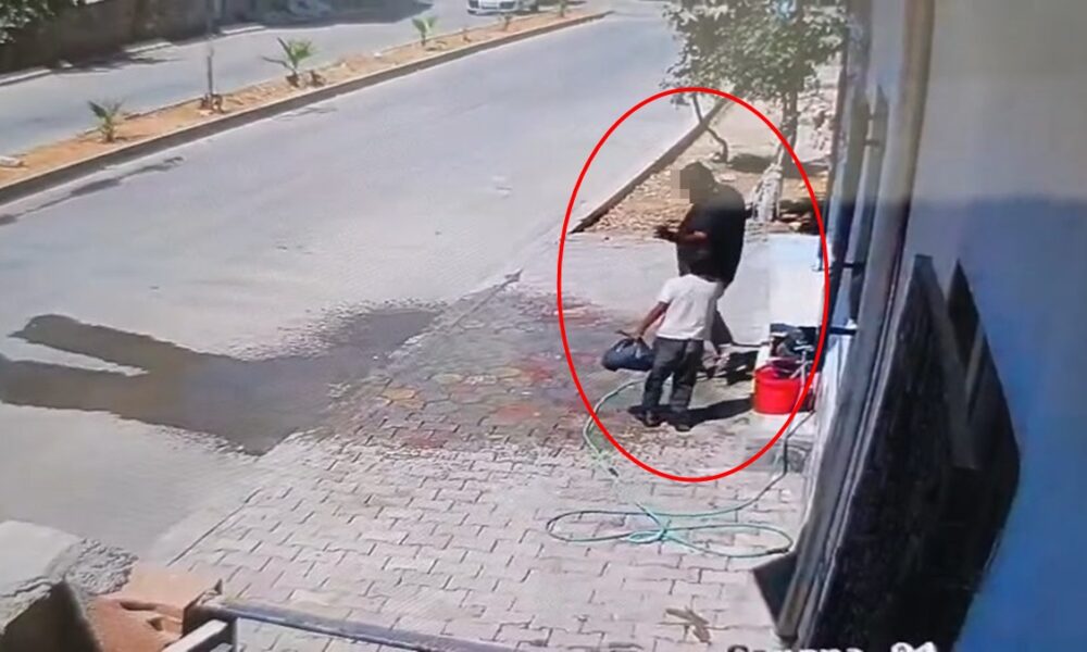 Olay, 29 Ağustos’ta öğleden sonra Kızıltepe ilçesi merkez Sanayi Mahallesi 35’inci Sokakta meydana geldi. Şarküteri ürünleri satan bir dükkanın önüne gelen baba, küçük yaştaki oğluyla birlikte elini ve yüzünü yıkama bahanesiyle iş yerinin önündeki musluğa bağlı hortumdan suyu kullanmak istedi. İş yeri sahibi Edip Irmak, baba ve oğluna izin verdi. Irmak’ın iş yerine girdiği sırada baba, oğluna iş yerinin önündeki mangal kömürünü alıp gitmesini söyledi. O anlar, güvenlik kamerasına yansıdı. Görüntülerde; elini, yüzünü ve başını yıkarak serinleyen babanın, iş yerini sahibinin çalıştığını anlayınca yanına gelen oğluna dükkanın önündeki mangal kömürü poşetini alıp gitmesini söylediği, küçük çocuğun poşeti aldıktan sonra eliyle gitmesinin işaret ettiği görüldü.