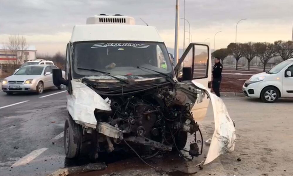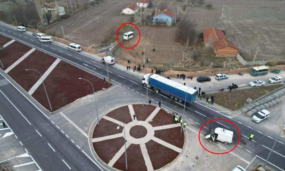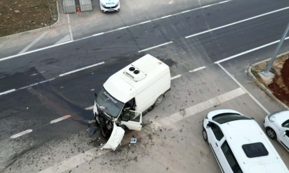 Kaza çevredeki iş yerinin güvenlik kamerasına yansıdı. Görüntülerde, kavşakta kamyonetle servisin çarpışma anı ve sonrasında çevredekilerin yardıma koşması yer aldı.