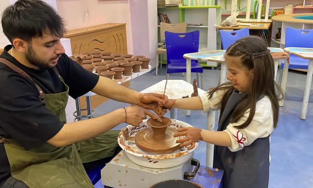 Çömlek sanatının unutulmaya yüz tutmuş geleneksel el sanatlarından biri olduğunu belirten Okul Müdürü Ahmet Sağsöz, “Unutulmaya yüz tutmaya başladığı bir dönemde öğrencilerimizin bu sanatı tanımasını istedik. Akademik başarının yanı sıra sanatsal ve kültürel anlamda da bilgi ve becerilerinin gelişmesini hedefliyoruz. Anasınıfı, ilk ve ortaokul olmak üzere öğrencilerimizin tamamına bu sanatı tanıtmak amacıyla dersler veriyoruz. Amacımız öğrencilerimize geleneksel el sanatlarını tanıtmakla beraber onların sabır ve motor becerilerinin gelişmesi ve özgüvenleri açısından büyük bir katkı sunduğunu düşünüyoruz” diye konuştu.