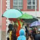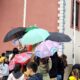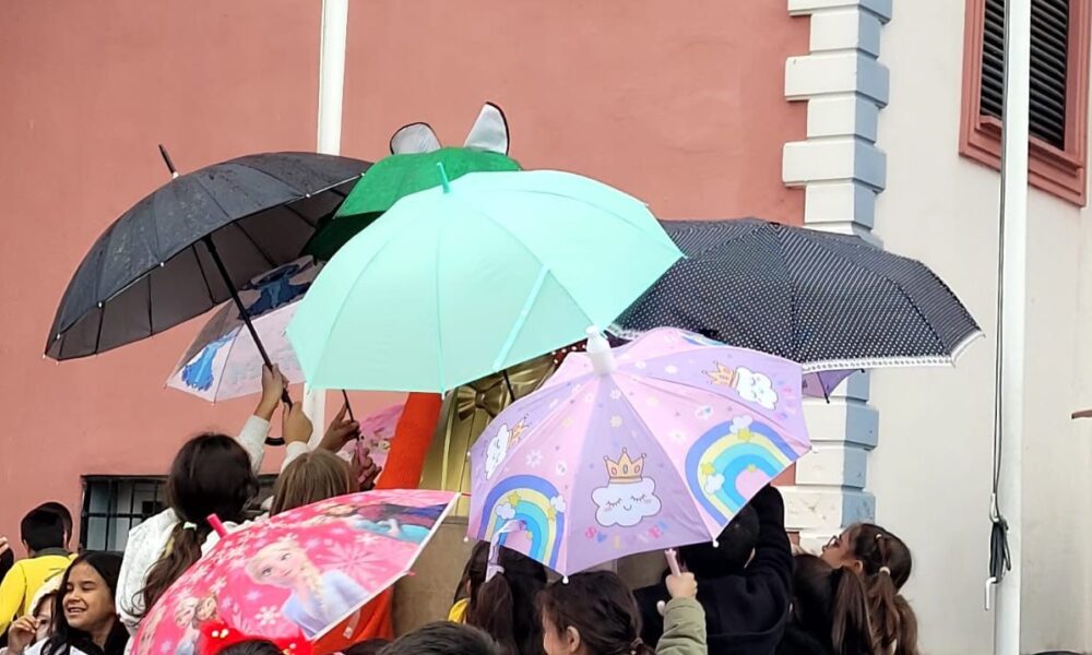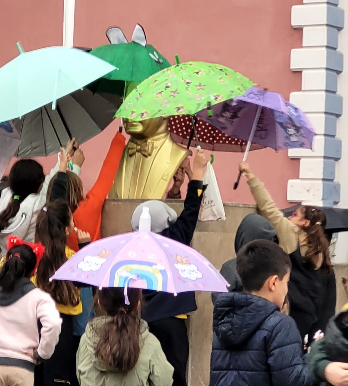 Öğrenciler yağmur altında Atatürk büstünü şemsiyeyle korudu