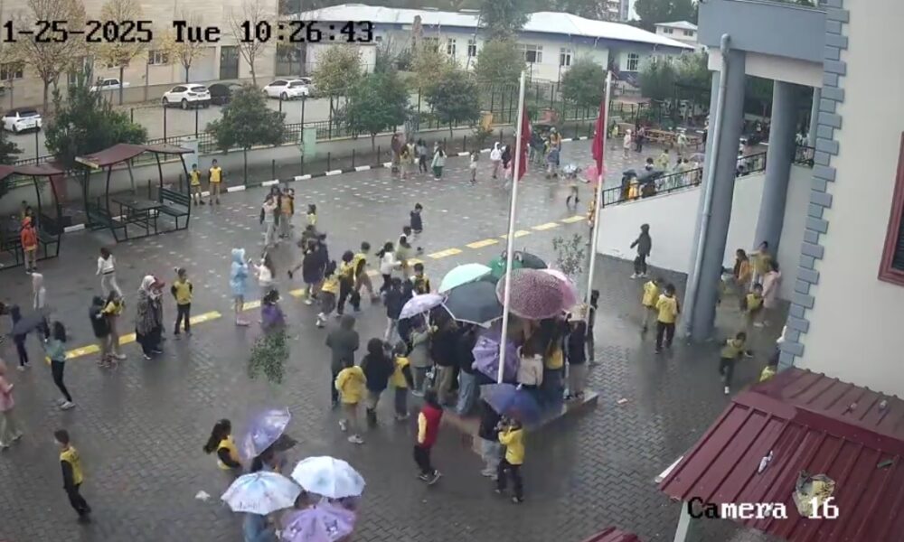 İlçedeki Zahit Çetin İlköğretim Okulu’nda dün ders gören öğrenciler teneffüse çıktıkları sırada aniden yağmur bastırdı. Bahçedeki 2 öğrenci şemsiyelerini Atatürk büstünün üzerine tutarak korumaya aldı. O anları gören diğer öğrenciler de arkadaşlarına katıldı. Yaklaşık 10 öğrenci, el ele vererek şemsiyeleriyle büstün üzerini çatı gibi kapattı. Ders zili çalsa da bazı çocukların büstü bırakmayıp şemsiye ile Atatürk büstünü koruduğu görüldü. Nöbetçi öğretmenlerin dikkatini çeken anlar, cep telefonu kamerasıyla görüntülendi.