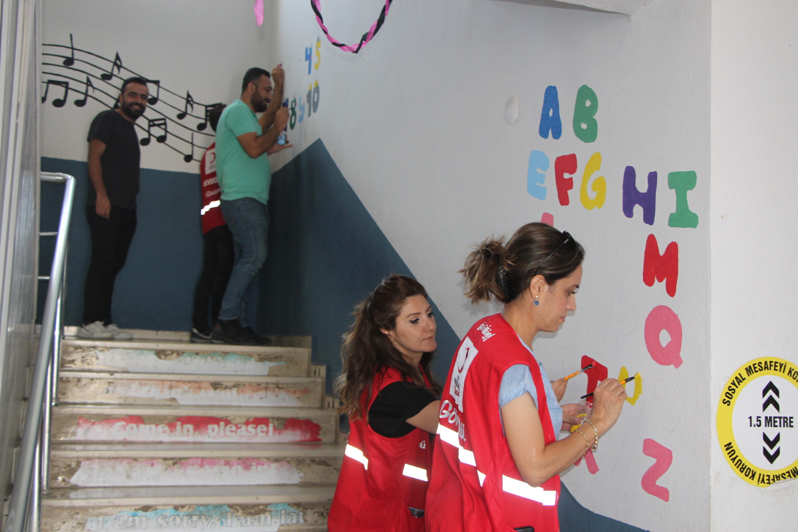 Şırnak’ta, Türk Kızılay’ı gönüllüleri, 12 Eylül’de açılacak okullarda öğrencilerin keyifli vakit geçirmelerini sağlamak ve uyumlarını hızlandırmak amacıyla duvarlarını boyayarak, masal kahramanlarını ve çizgi film karakterlerini çizdi. Yaz tatilinden bu yana 5 okulu boyayan gönüllüler, talep geldiği sürece okulları renklendirmeye devam edeceklerini söyledi.