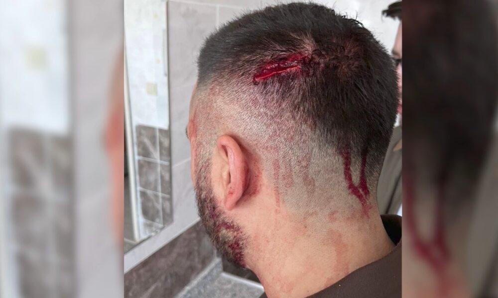 • Şanlıurfa’da kendisini öğrenci velisi olarak tanıtan M.R.U., tarafından demir sopayla saldırıya uğrayan sınıf öğretmeni Tuncay Taha Kandemir (33), başından yaralandı. Fotoğraf: Şanlıurfa, (DHA)