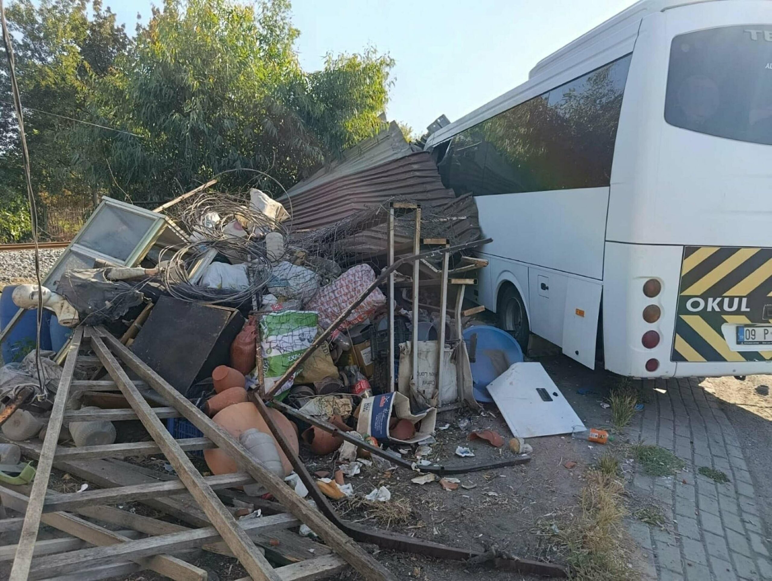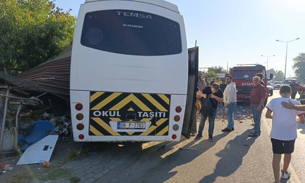 Kaza, saat 09.00 sıralarında Aydın-Denizli kara yolu Atça Mahallesi yakınlarında meydana geldi. Yenipazardan Nazilli yönüne giden Hüseyin Yelaldı, kullandığı 09 P 7783 plakalı okul servis midibüsünün hakimiyetini kaybetti. Kontrolden çıkan midibüs, karşı şeride geçip, yol kenarındaki yöresel ürün satışı yapılan iş yerine çarptı. İş yerinde hasar meydana gelirken, şoför Yelaldı, araçta sıkışıp yaralandı. Midibüsteki 23 öğrenci ise kazayı yara almadan atlattı.