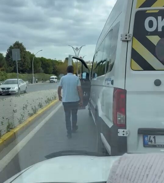 Gebze ilçesinde dün, okul servis minibüsünün şoförü, önünü kestiği hafif ticari aracın sürücüsünü “Barındırır mıyım seni bu memlekette? Nefesini keserim” diyerek tehdit etti. Araç sürücüsü, cep telefonu ile kayıt altına aldığı anları sosyal medya platformlarında paylaştı. Görüntü üzerine harekete geçen polis ekipleri servis şoförünü tespit ederek hakkında tehdit suçundan adli işlem başlattı, ayrıca trafik güvenliğini tehlikeye düşürdüğü gerekçesiyle 993 TL para cezası uyguladı.
