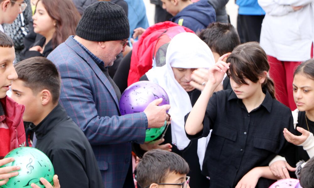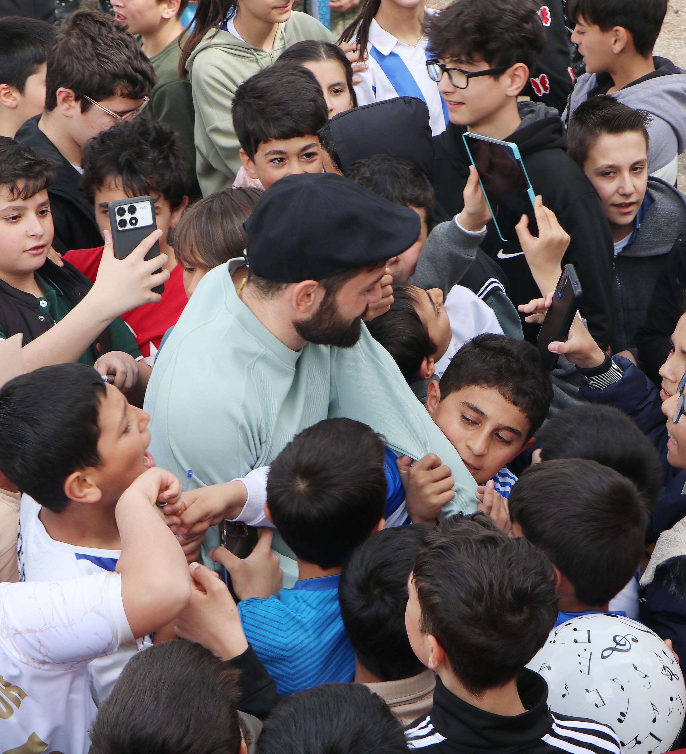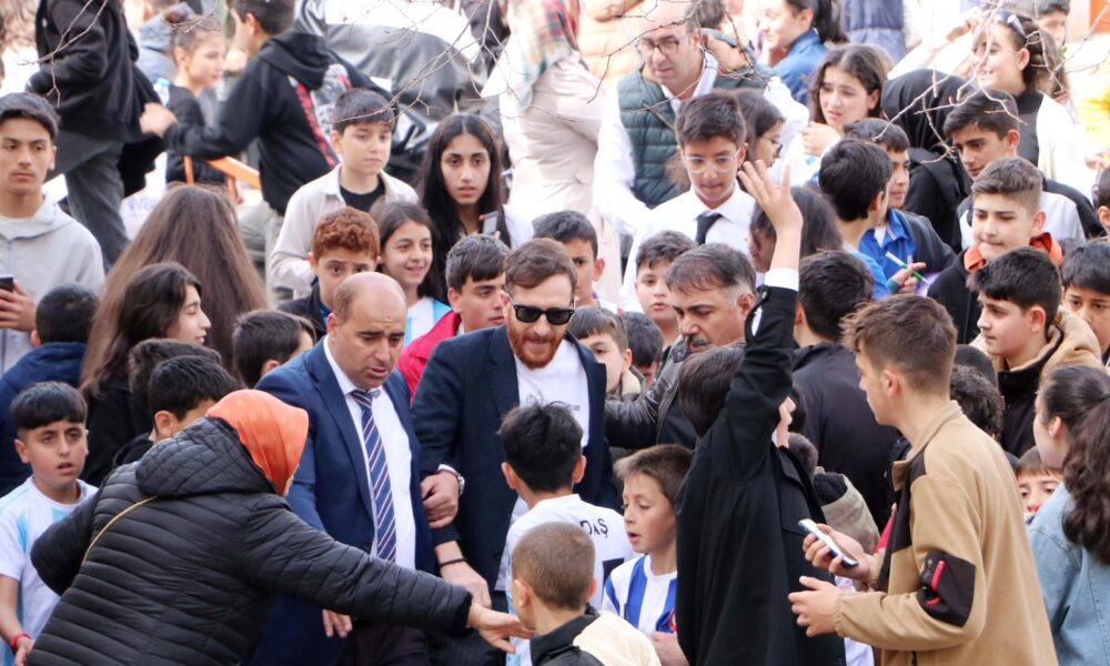 Aynı dakikalarda okulun bahçesine kamyonetle getirilen 550 plastik futbol topundan almak isteyen öğrenciler birbirleriyle yarıştı. Toplardan almak isteyen bazı kadın ve erkek veliler de öğrencilerin arasına girdi. Okulda düzenlenen imza töreni yaklaşık 2 saat sürdü.