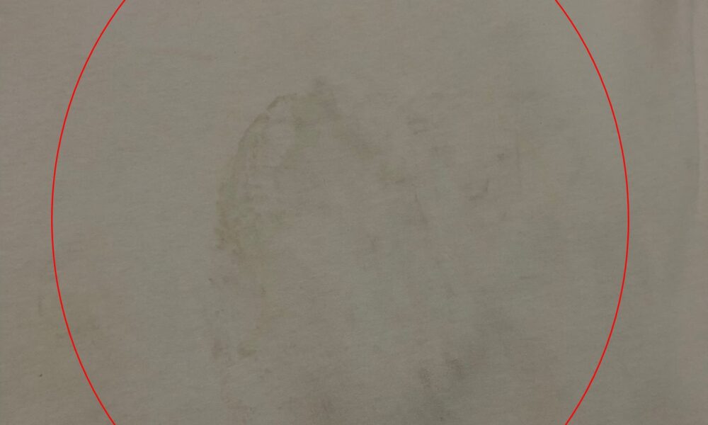 • Öğretmenin tekme atmasıyla ayak izinin çıktığı okul tişörtü. Fotoğraf: Bursa, (DHA)