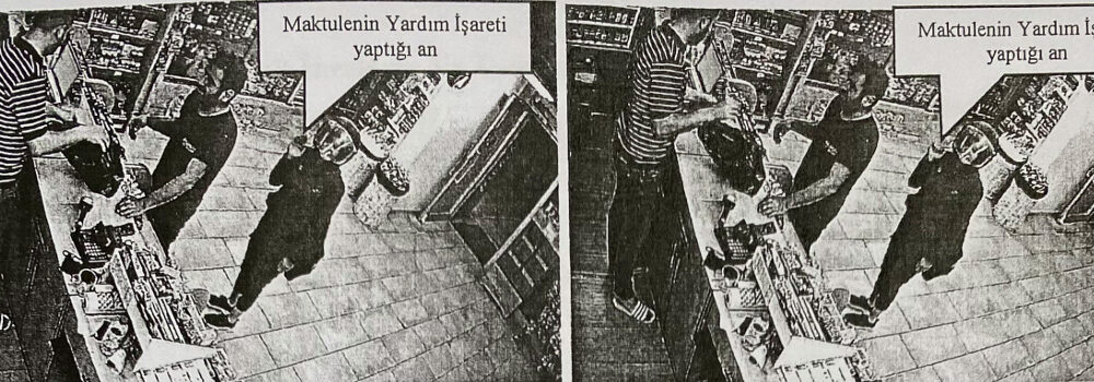 Bu arada Hatice Yalman’ın, olay öncesi alkol almak için girdikleri markette kasiyere, yardım çağrısı olan işareti yaptığı anlara ilişkin görüntüler ortay çıktı. Marketin güvenlik kamerasına yansıyan görüntülerde, ikilinin markete girdiği, Mustafa Koç kasada ödeme yaparken, Hatice Yalman’ın ise uluslararası literatürde yardım çağrısı olan işareti yaptığı görülüyor.