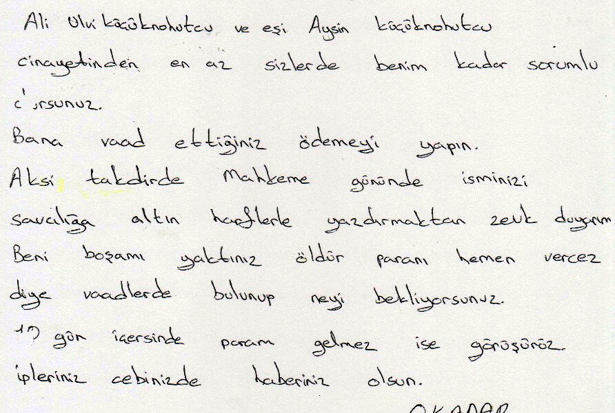 KATİLİN MEKTUBU EŞİNİN ÜSTÜNDE YAKALANMIŞTI
