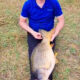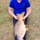 Oltayla yakaladığı dev balığı bacaklarının üzerinde bebek gibi salladı