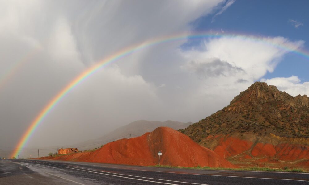 Oltuda oluşumları 45 milyon yıl öncesine dayanan, dünyada benzeri sadece Çinde bulunan kırmızı tepeler, yağmur sonrası çıkan gökkuşağı ile güzel görüntüler oluşturdu. Renk cümbüşü cep telefonu kamerasına yansırken, o anlara tanıklık edenler bol bol fotoğraf çekip, manzaranın keyfini çıkardı. Osman Kamacı, “Yağmurdan sonra kırmızı tepelerin üzerinde oluşan gökkuşağında fotoğraf çekildik. Gerçekten çok güzel bir manzaraydı” dedi.