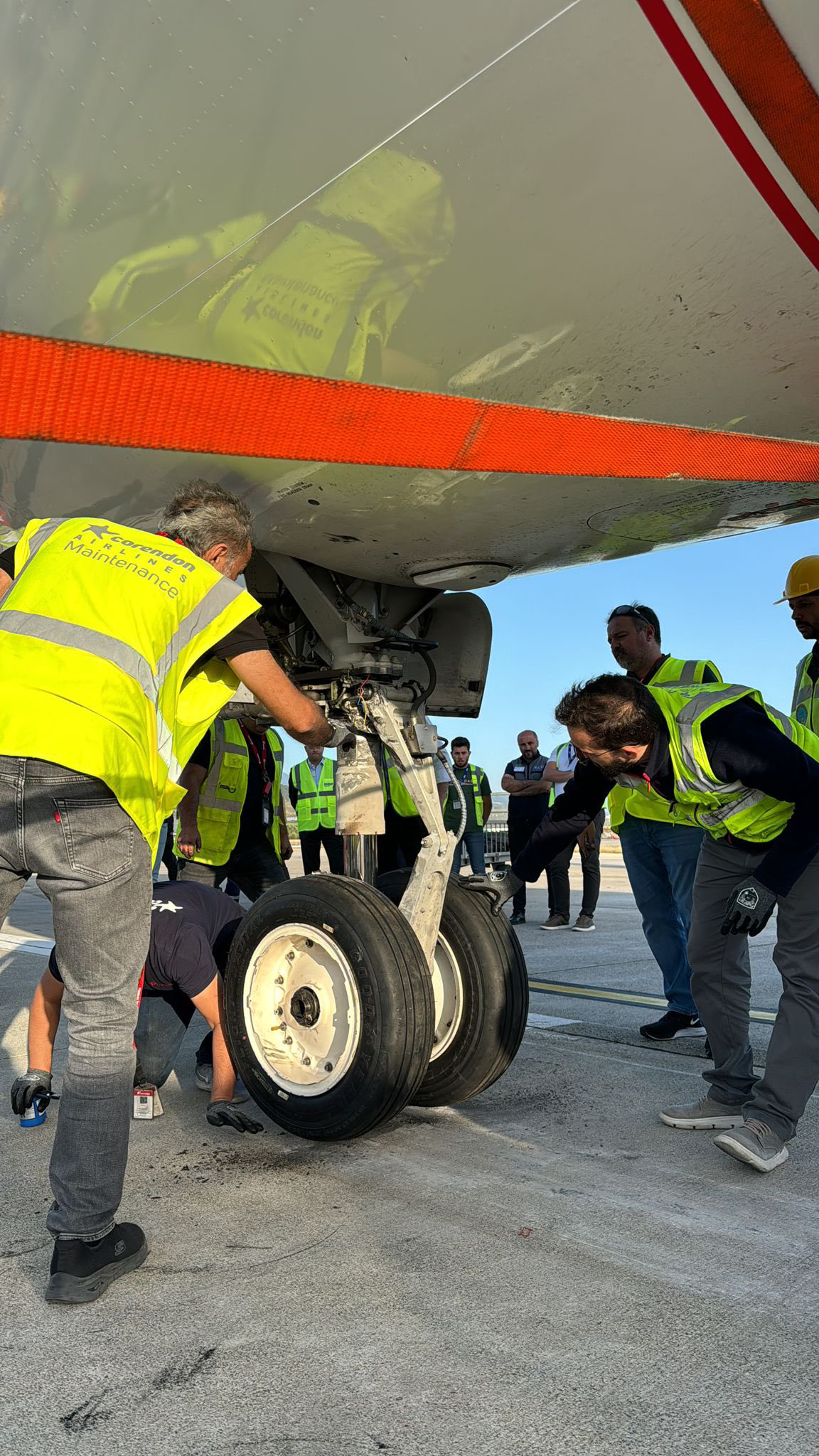 Ön lastiği patlayan uçak, park yerine çekildi; pist uçuşa açıldı