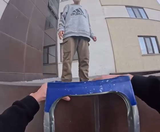Nilüfer ilçesinde arkadaşları ile oyun oynayan bir çocuk, bina girişindeki damda mahsur kaldı. O sırada binaya sipariş getiren kuryeyi gören arkadaşları yardım istedi. Kurye, önce siparişini teslim etti ardından çocuğu kaldığı yerden merdivenle kurtardı. O anlar kuryenin kask kamerasıyla görüntülenirken, çocuklar, arkadaşlarını kurtaran kuryeye teşekkür etti.