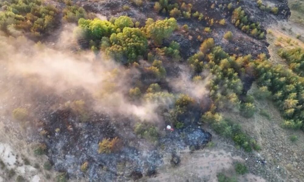 • Ordu'nun Mesudiye ilçesinde ormanda çıkan yangın, itfaiyenin yaklaşık 4 saatlik müdahalesiyle söndürüldü. Yanan alan, dron ile görüntülendi. Fotoğraf: Ordu, (DHA)