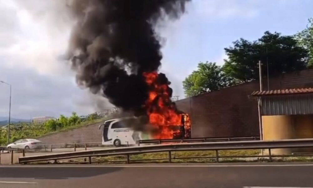 Ordu’da yolcu otobüsü alev alev yandı; olay anı kamerada
