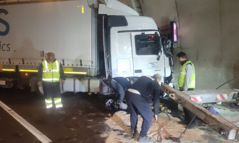 Orhangazi Tüneli’nde TIR duvara çarptı, otoyol bir saat ulaşıma kapandı