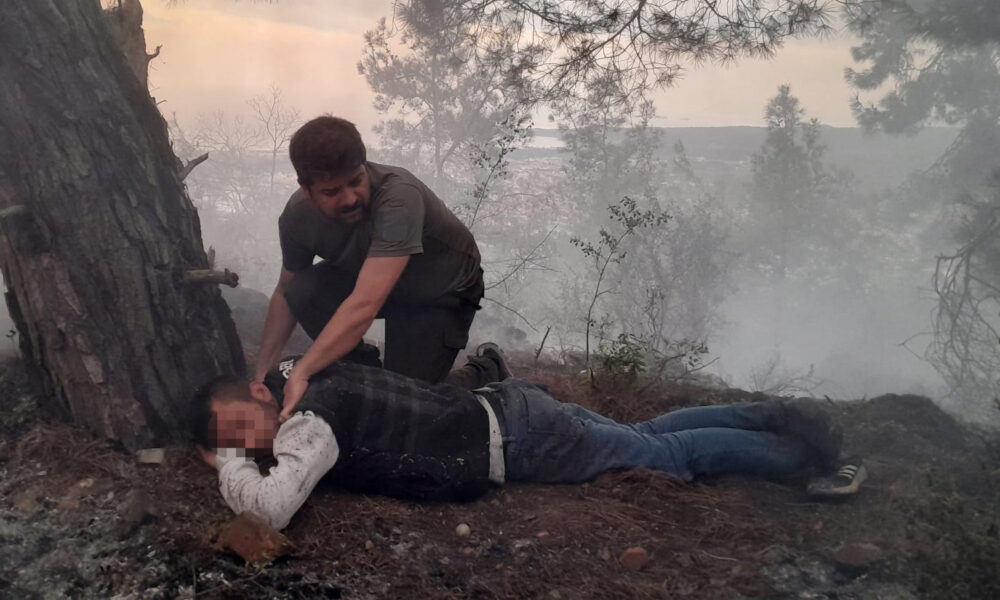 Ormandaki yangının ortasında baygın bulunan şüpheliye, ilçeye ve ormana giriş yasağı