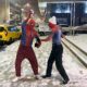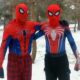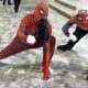 • İzmirli örümcek adam Ayaz Salih Koç (solda) ile Erzincanlı örümcek adam Asaf Özdemir (sağda), kartopu savaş yaptı. Fotoğraf: Erzincan, (DHA)