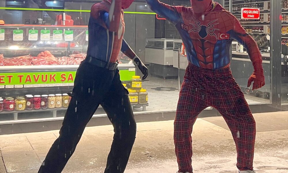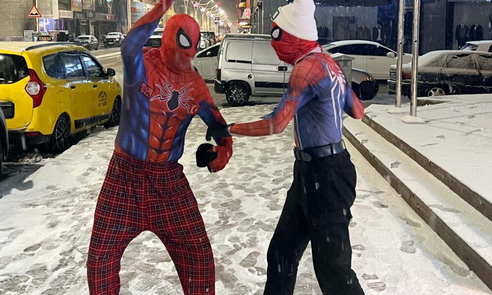 Otostopla bir yılı aşkın süredir Türkiyeyi dolaşan ve gittiği yerleri sosyal medyada paylaşımlar yaparak tanıtmaya çalışan Ayaz Salih Koç, bugüne kadar 61 ili ziyaret etti. Koç, 62nci şehir olarak geldiği Erzincanda, kendisi gibi örümcek Adam kostümü ile gezen Asaf Özdemir ile karşılaştı. İkili kısa bir şaşkınlığın ardından yağan lapa lapa kar altında kar topu savaşı yaptı. Çevredekilerin ilginç bakışları altında birbirine kar topu atan Koç ve Özdemir, bir süre sonra oyunu bırakıp birbirine sarıldı.