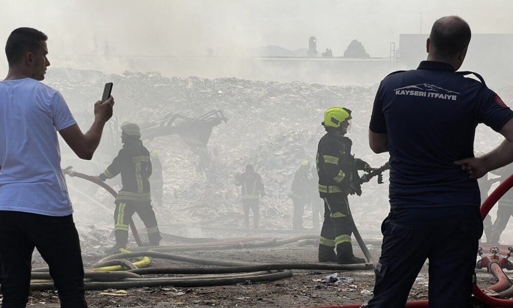 Kayseri Organize Sanayi bölgesi 12nci Cadde’de bugün öğle saatlerinde ot yangını çıktı. Alevler rüzgarın da etkisiyle kısa sürede yayılarak kağıt fabrikasının bahçesindeki atık kağıtları tutuşturdu. Alevler bir süre sonra da fabrikaya sıçradı. İhbar üzerine bölgeye polis ve itfaiye ekipleri sevk edildi. İtfaiye ekipleri yangına müdahale ederken, iş makineleriyle fabrikadaki atık kağıtlar dışarı çıkarılmaya çalışılıyor.