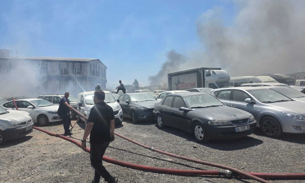 Ot yangınında alevler yediemin otoparkındaki araçlara sıçradı