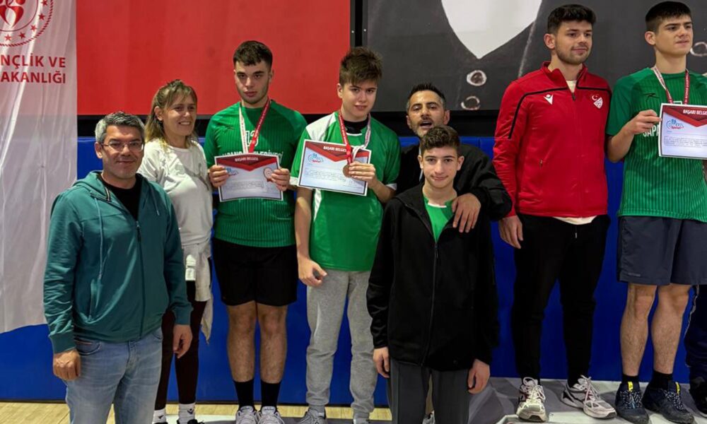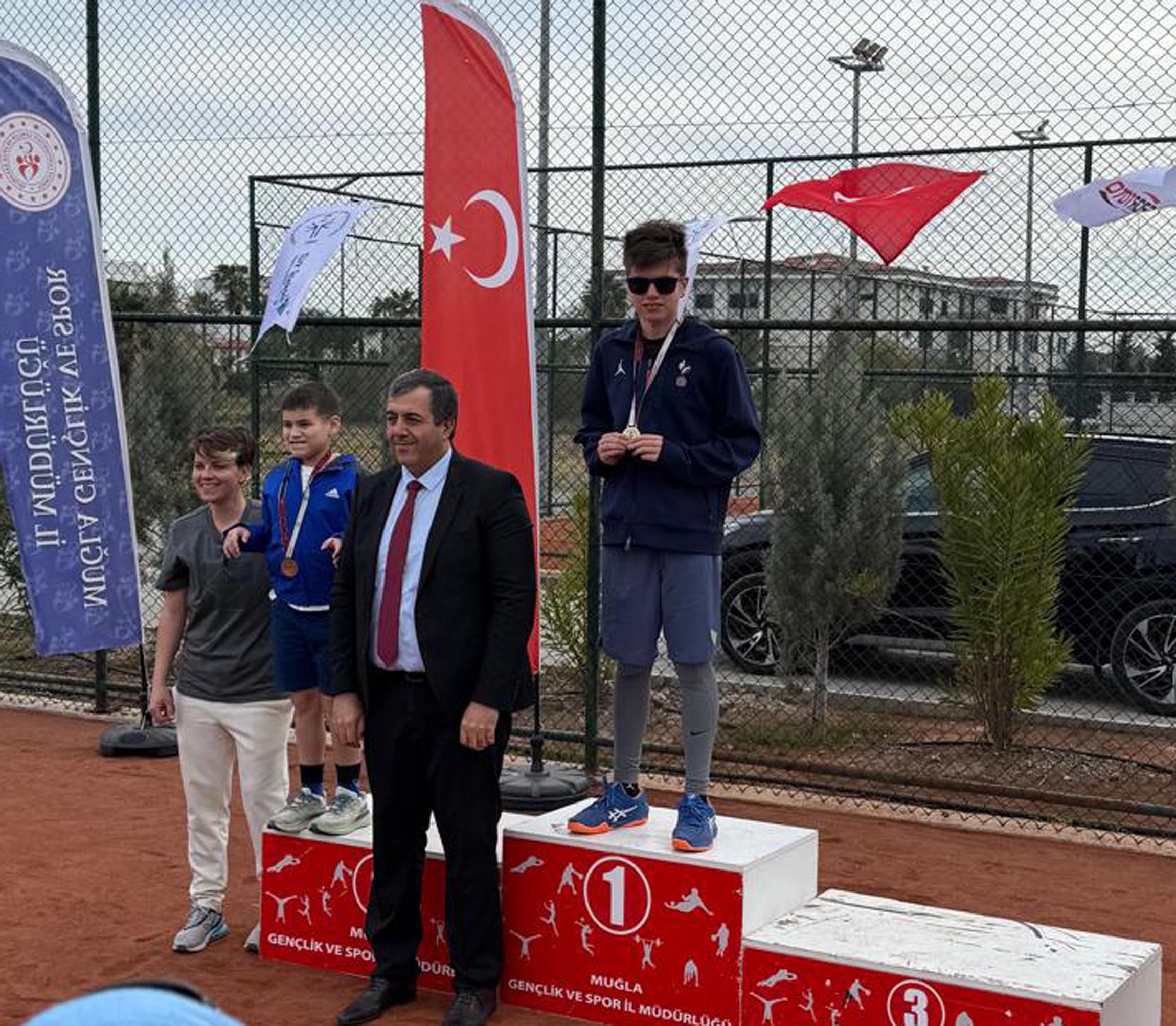 Tekirdağ'da 1,5 yıl önce başladığı tenis sporunda azmiyle fiziksel engellerini yenen otizmli Ata Türközü (16), (sağda, kürsüda) daha önce de yüzme, masa tenisi ve okçuluk sporunda başarılar elde etti. Fotoğraf:
