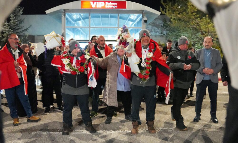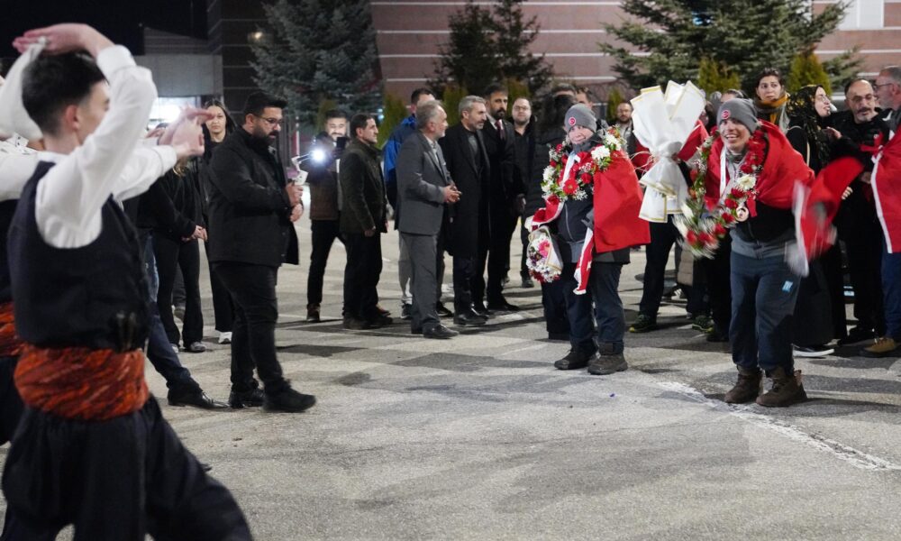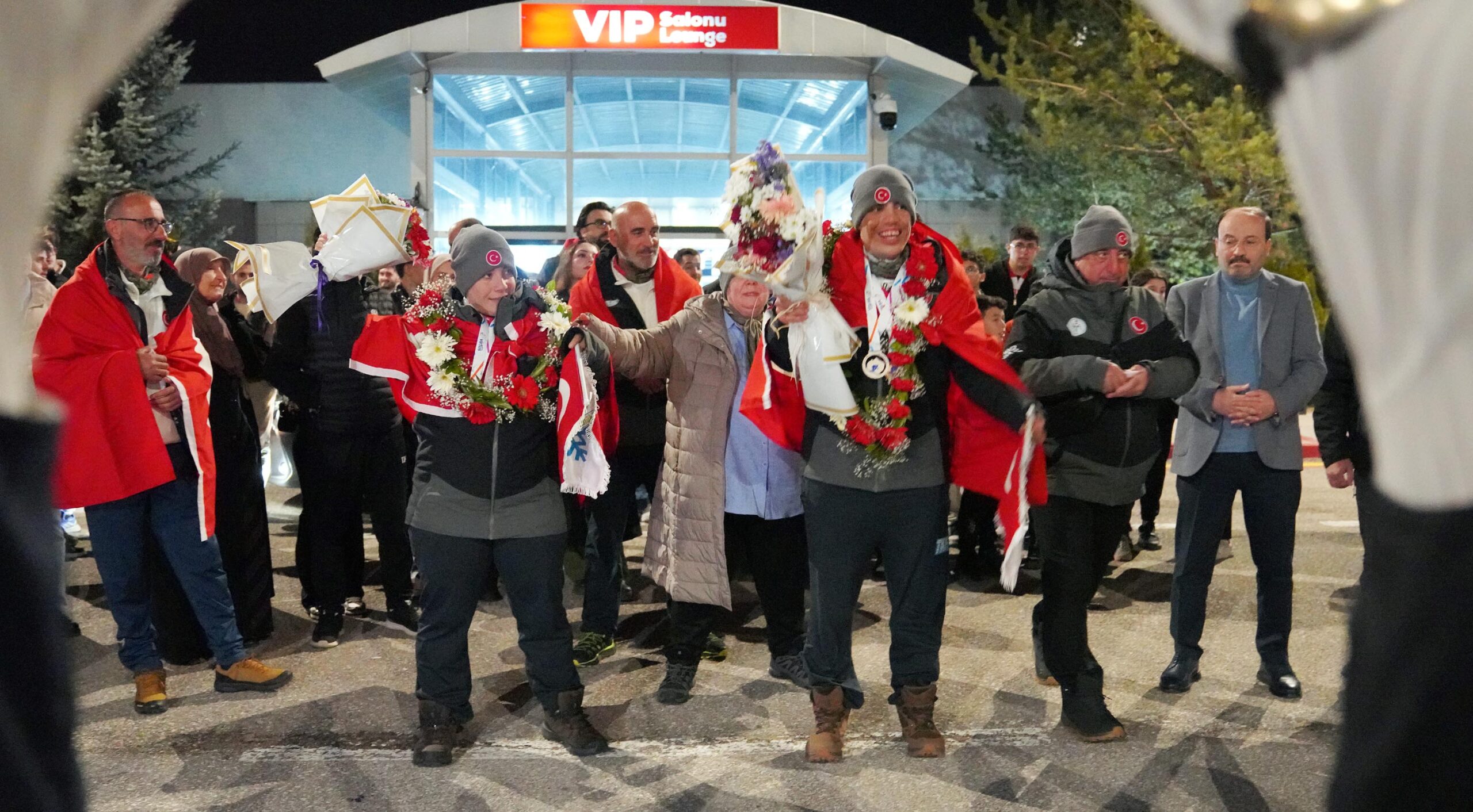 Otizmli ikiz milli kayakçılara Erzurum’da coşkulu karşılama