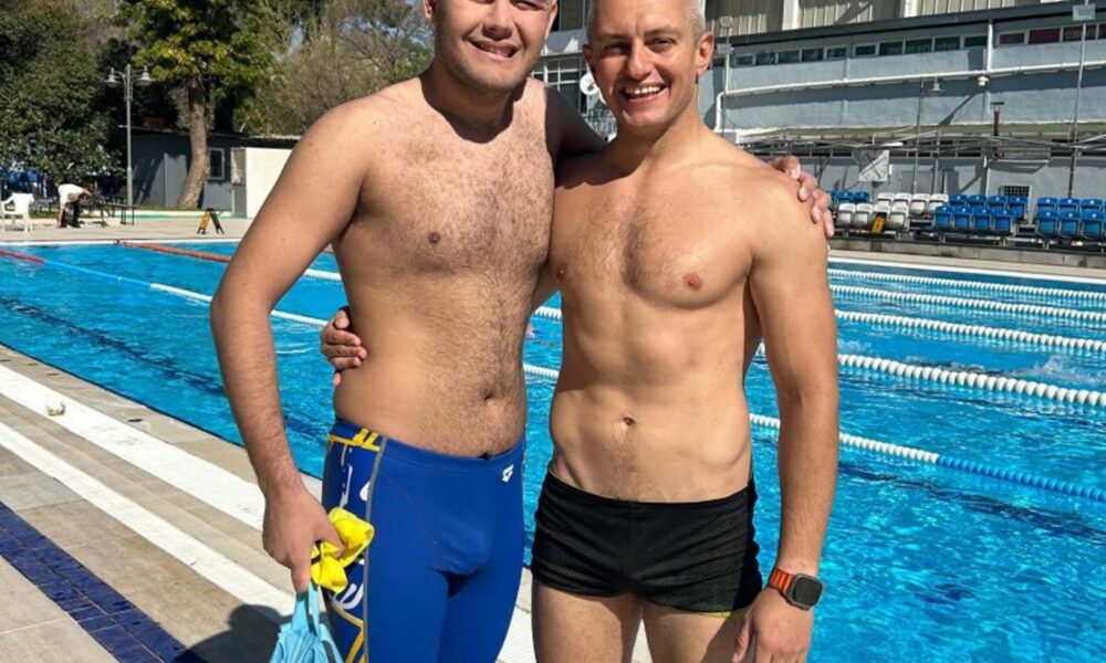 • Manş Denizi'ni solo geçerek tarihe geçen otizmli ultra maraton yüzücüsü Tuna Tunca (Solda),antrenörü Mert Onaran (Sağda) ile birlikte.Fotoğraf:Arşiv/İzmir,(DHA)
