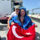 • Manş Denizi'ni solo geçerek tarihe geçen otizmli ultra maraton yüzücüsü Tuna Tunca (Sağda),annesi Gülnur Tunca (Solda) ile birlikte.Fotoğraf:Arşiv/İzmir,(DHA)