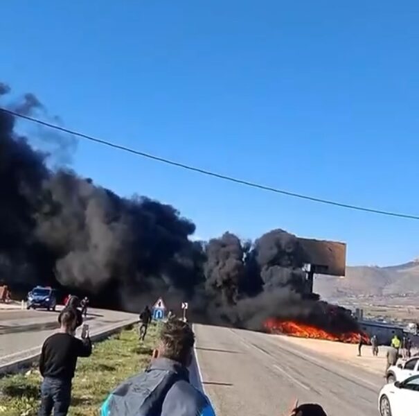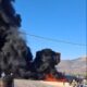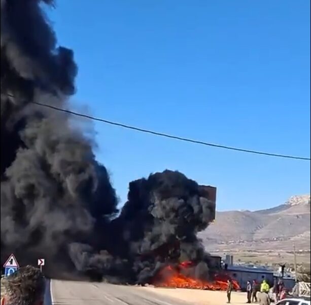 Oto lastikçide çıkan yangın nedeniyle kara yolunda ulaşım aksadı