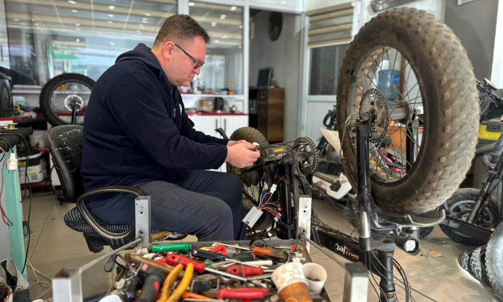 Oto yıkama işi yaptığı sanayide, hobisini geliştirip elektrikli bisiklet tamir ustası oldu