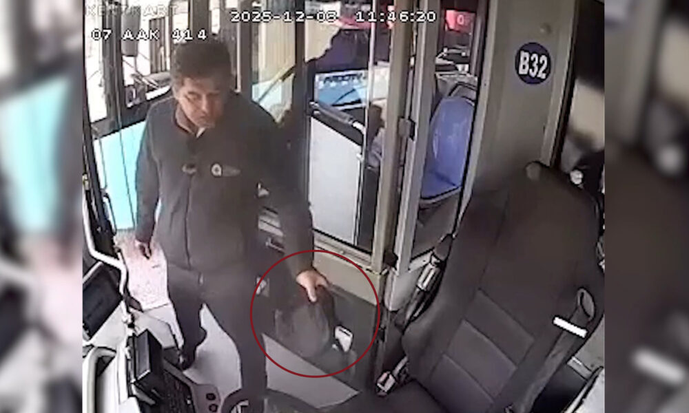Yevlalın, otobüs içerisinde çantayı bulma anı, araçtaki güvenlik kameraları tarafından kaydedildi.