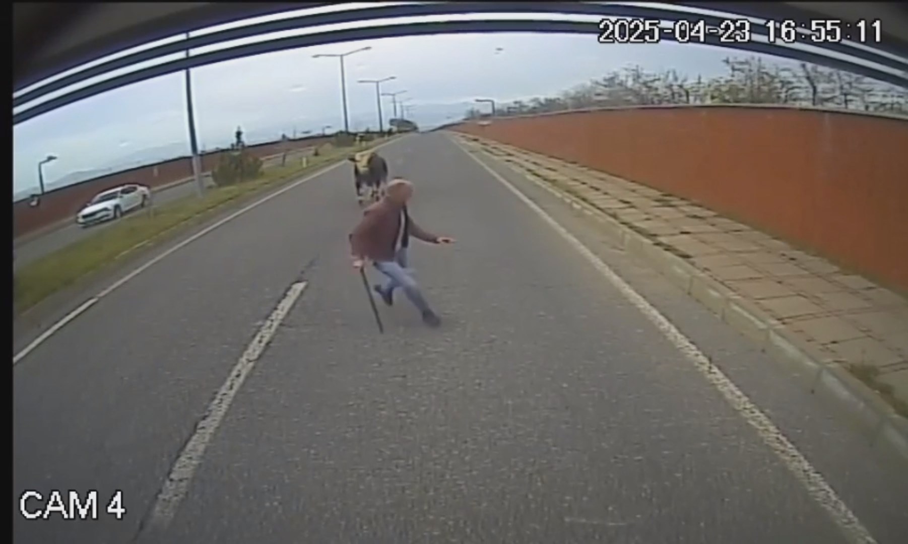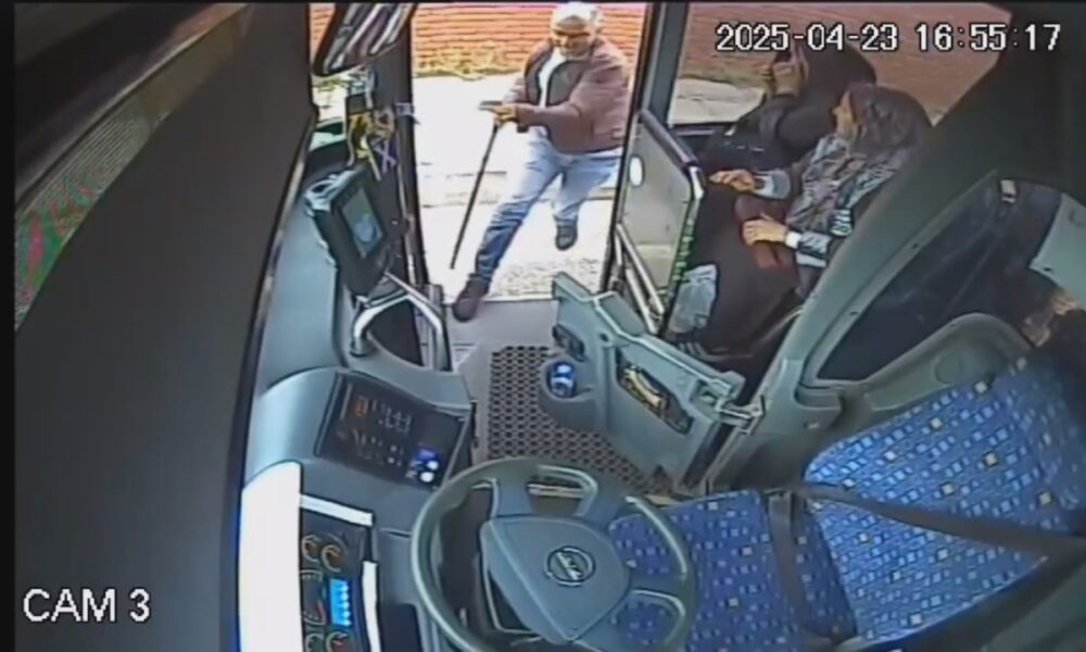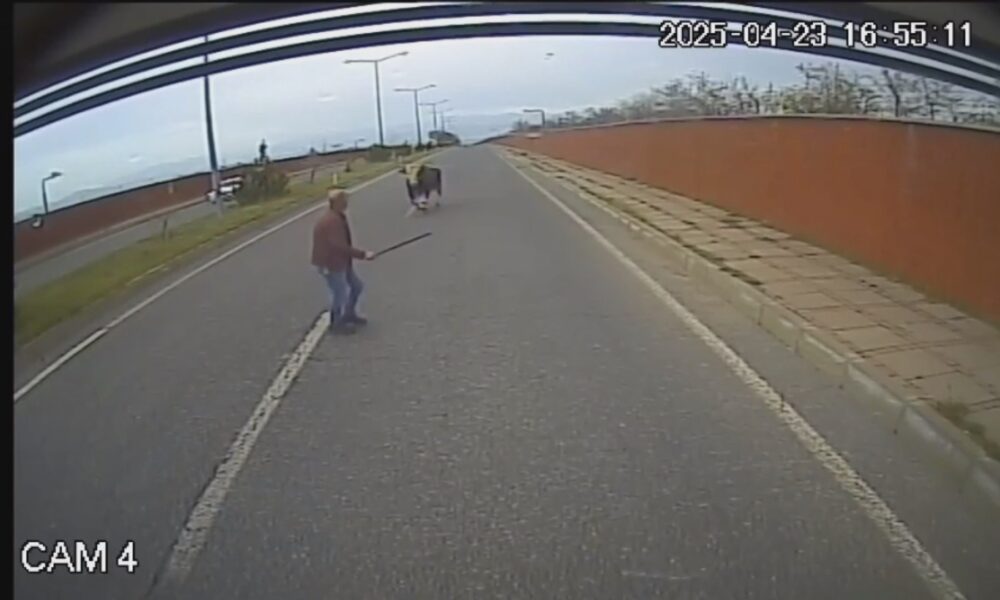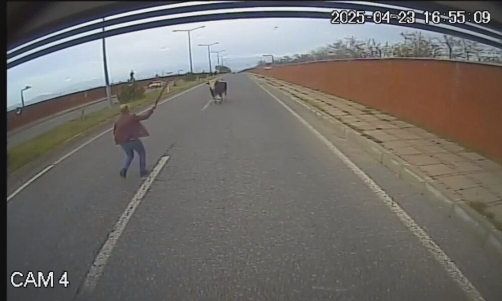 Olay, dün akşam saatlerinde Bingöl-Genç kara yolunda 49’uncu Tugay Kavşağı yakınında meydana geldi. Mahmut Bürkük, 12 M 0009 plakalı halk otobüsü ile İçmeler seferini yaparken yola boğa çıktı. Bürkük korna çalarak bekledi ancak boğa yoldan uzaklaşmadı. Bunun üzerine Mahmut Bürkük, boğayı yoldan çıkarmak için eline bir sopa alarak otobüsten indi. Ancak hayvan, kendisine yaklaşan Bürkük’e saldırıp, kovaladı. Büyük panik yaşayan Mahmut Bürkük koşarak otobüse binip, bölgeden uzaklaştı. O anlar, otobüsün araç içi kamerasına yansıdı.