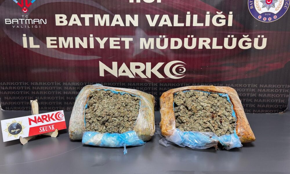 İl Emniyet Müdürlüğü Narkotik Suçlarla Mücadele Şube Müdürlüğü ekipleri tarafından yapılan çalışmada, batı illerinden kente gelen otobüste narkotik köpek Mailo ile arama yapıldı. Mailo’nun tepki verdiği valizde, 2,5 kilo skunk ele geçirildi. Valizin sahibi ise gözaltına alındı. İşlemlerinin ardından adliyeye sevk edilen şüpheli, çıkarıldığı mahkemede ‘Uyuşturucu ticareti yapmak’ suçundan tutuklandı.