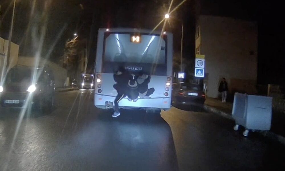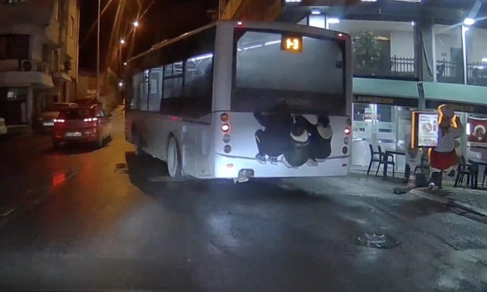 İlçede trafiğin yoğun olduğu güzergahta 3 çocuk, seyir halindeki özel halk otobüsünün arkasına asılarak uzun süre yolculuk yaptı. Hiçbir güvenlik önlemi olmadan trafikte ilerleyen çocuklar hem kendi canlarını hem de diğer sürücüleri tehlikeye attı. Çevredekilerine uyarılarına aldırış etmeyen çocukların yolculuğu, cep telefonuyla görüntülendi.
