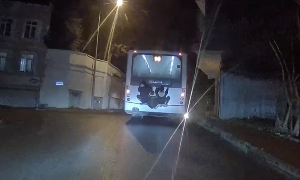 Otobüsün arkasına asılan çocukların tehlikeli yolculuğu kamerada
