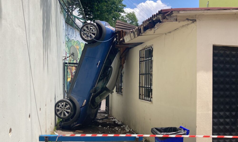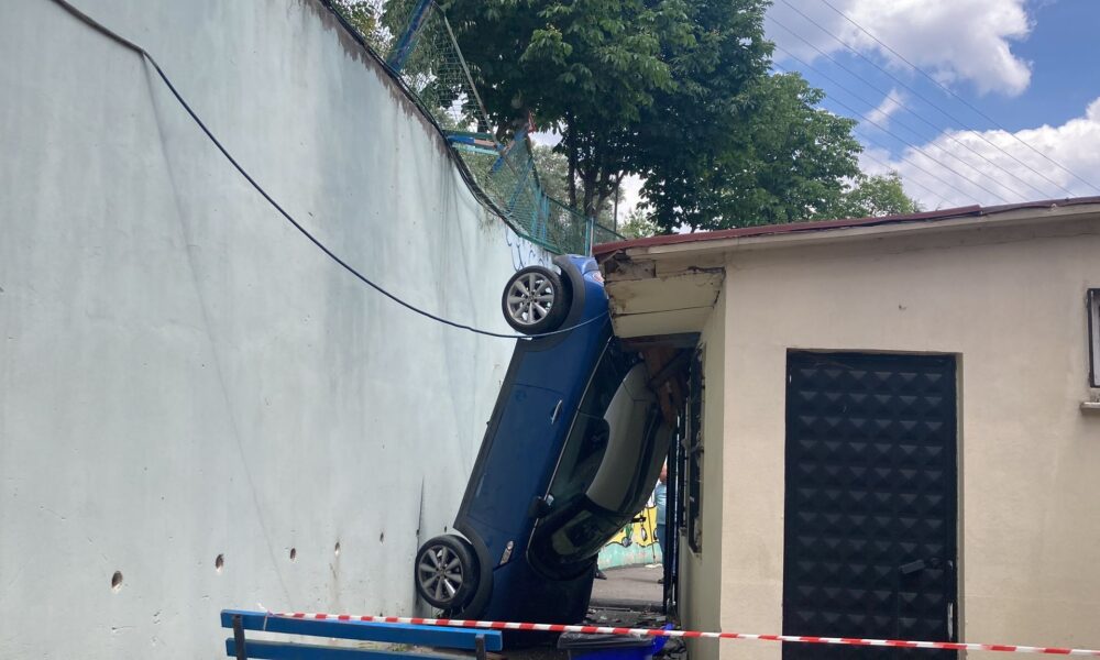 Otomobil, 5 metreden okul bahçesine uçtu; sürücü yaralandı