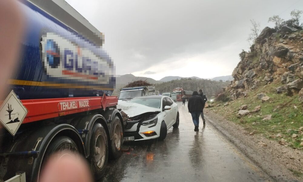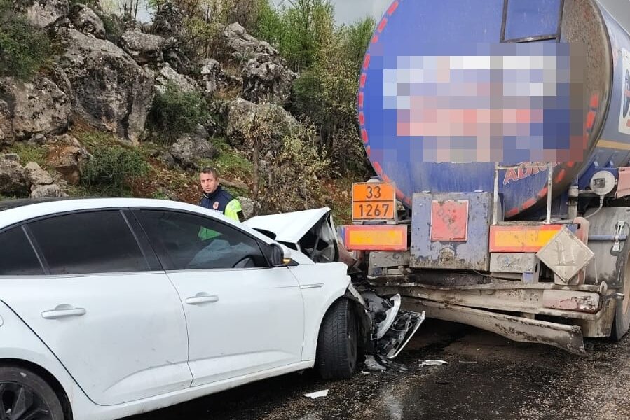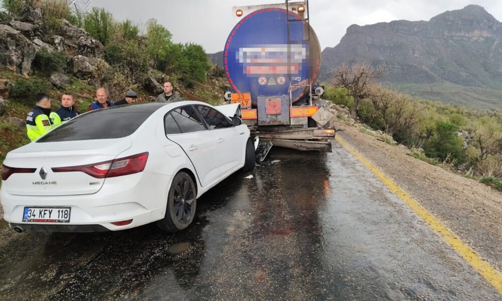 Otomobil, akaryakıt tankerine çarptı; 2’si çocuk 4 yaralı