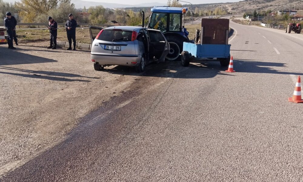Kaza, sabah saatlerinde Doğanay Mahallesi Atatürk Bulvarı Doktorlar Sitesi kavşağında meydana geldi. Hacılar F Tipi Cezaevi Jandarma Karakol Komutanlığı görevlilerinin içerisinde bulunduğu, Ç.K. yönetimindeki 26 LD 019 plakalı otomobil, kavşakta A.U.nun kullandığı 71 ACB 892 plakalı traktörle çarpıştı. Kazada, jandarma personeli M.E. Y.D. ve Ç.K. yaralandı. Kaza yerine sağlık, polis ve jandarma ekipleri sevk edildi. Yaralılar, sağlık ekiplerinin ilk müdahalesinin ardından hastaneye kaldırıldı. Tedaviye alınan yaralıların durumlarının iyi olduğu öğrenildi. Kazayla ilgili inceleme başlatıldı.