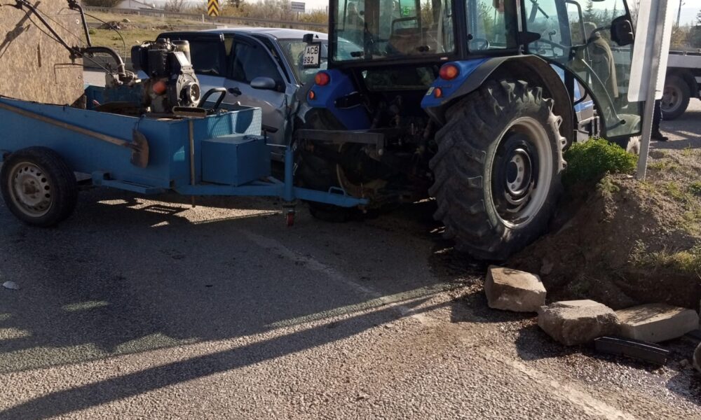 Otomobil ile traktör çarpıştı; 3 jandarma personeli yaralı