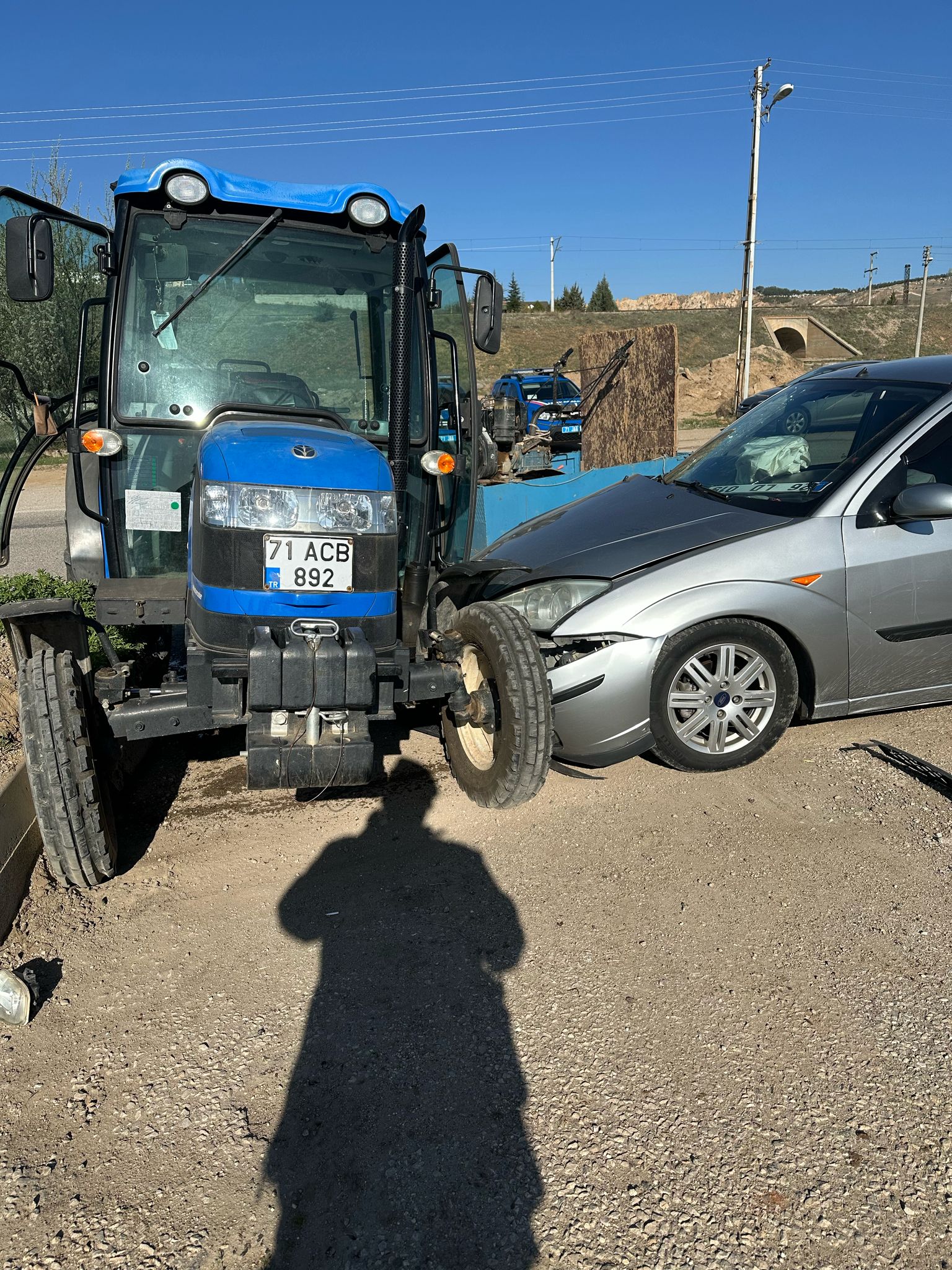 • Kırıkkale'nin Bahşılı ilçesinde otomobil ile traktörün çarpıştığı kazada, 3 jandarma personeli yaralandı. Fotoğraf: Burak CAN/Kırıkkale, (DHA)